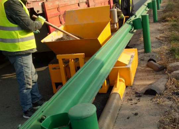 小型攔水帶機主要是指其能生產(chǎn)出的攔水帶尺寸較小,一般不超過25*25cm.機器設計緊湊,體型較小,特別適合高速路面護欄板下小型攔水帶施工。一人控制方向,一人上料,一人收尾即可。操作簡易上手快。